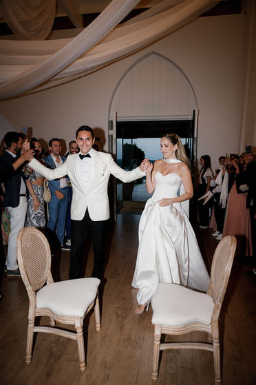 The celebrations began with an intimateShabbat dinner, styled to perfection by Nadiaherself—refined, elegant, and deeply personal. On the weddingday, the energy shiftedinto something calm and meaningful. The bridal suite became a sanctuary, whereNadia prepared alongside her closest friends and female family members in a momentthat felt intimate, emotional, and beautifully unhurried. She wore abespoke gownbyAlon Livné White, a designer close to her family, making the moment even morepersonal and profound.